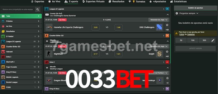 A aposta 0033bet oferece aos jogadores a experiência mais conveniente de apostas em eSports!